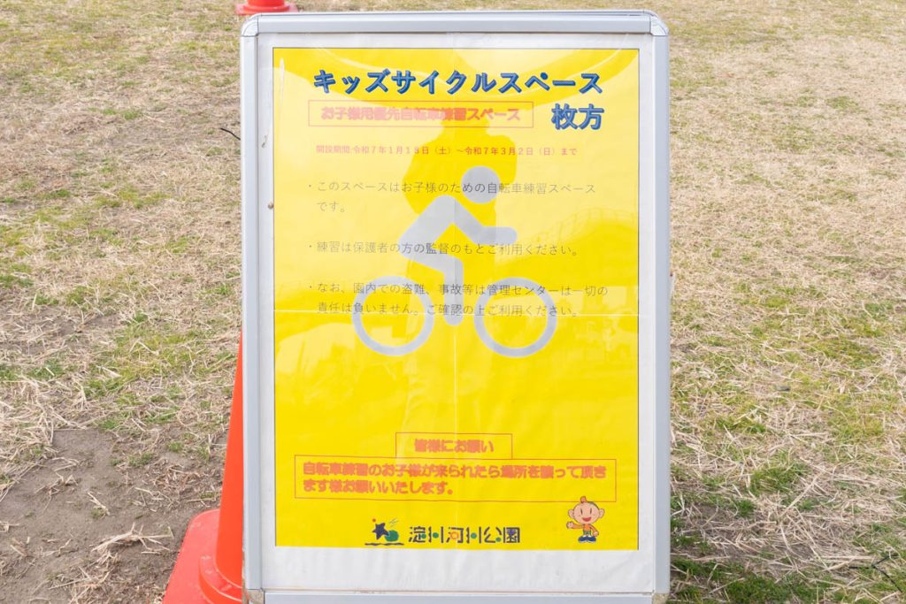 淀川河川公園枚方地区に自転車練習用スペース「キッズサイクルスペース」が期間限定でできています。
