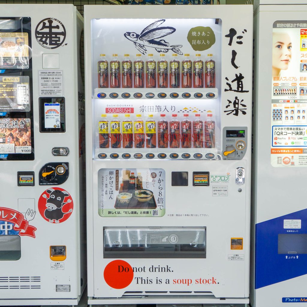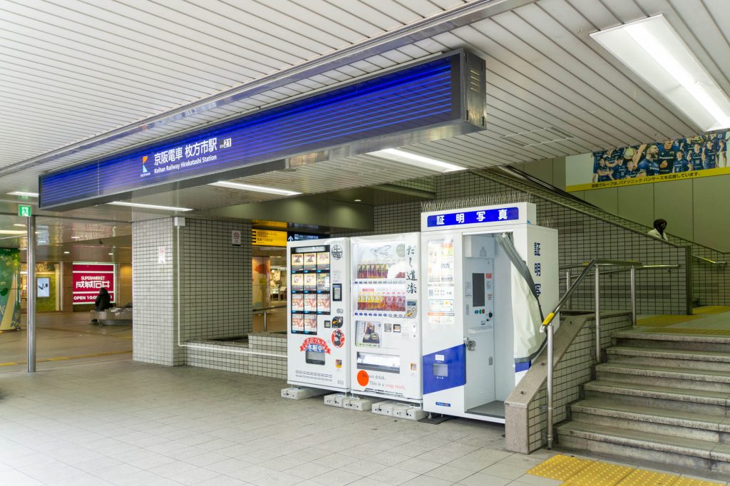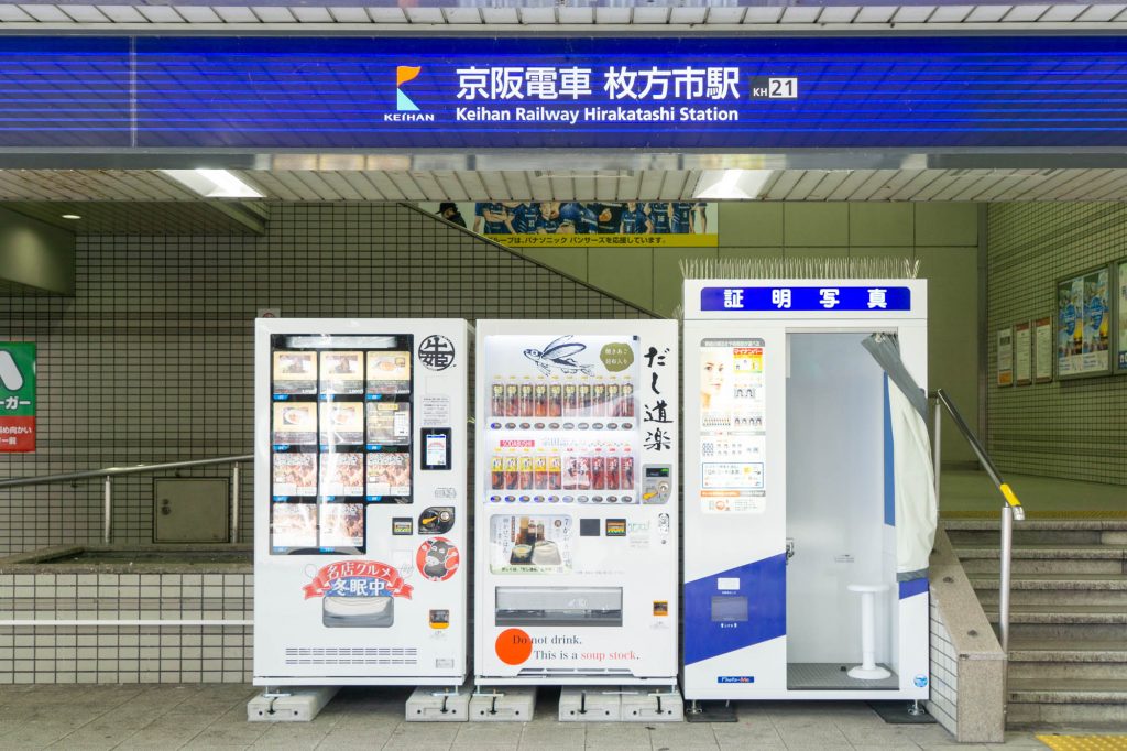 枚方市駅に「だし道楽」の自販機が設置されています。