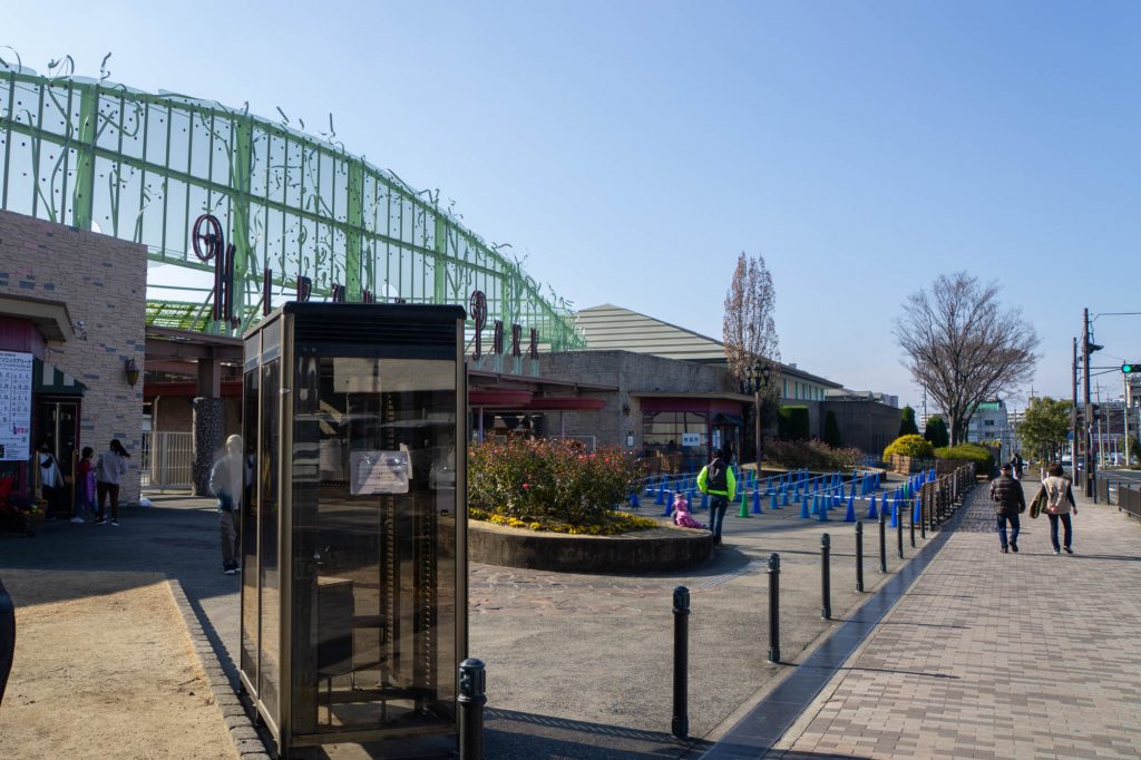 ひらかたパークの入口前にある公衆電話が撤去されています。