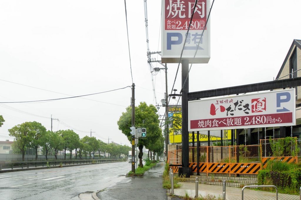 京都方面で隣はうどんの釜盛、その先にはエディオンなどが。