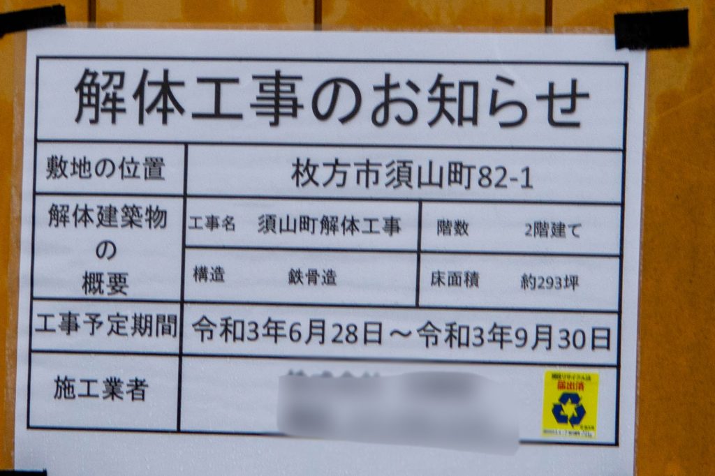 1号線沿い須山町の「美味焼肉 いただき」があった建物が解体されています。