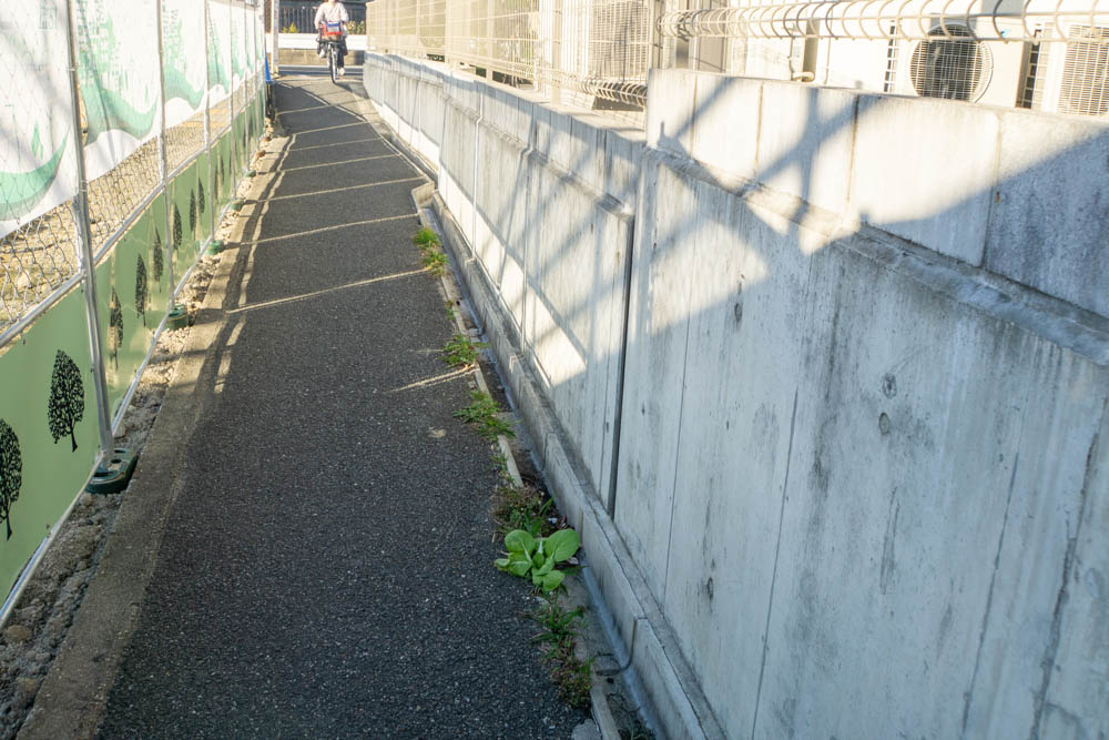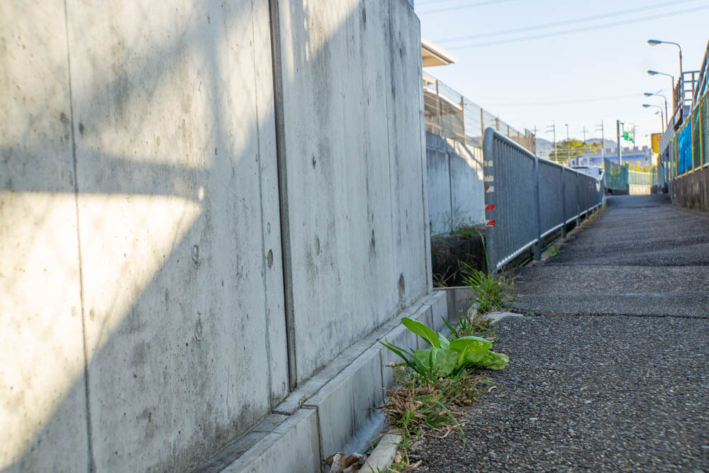 生えていたのは藤阪駅ちかくの宅地造成工事が行われている場所とくりもとクリニックやレインボー薬局の間にある細い路地。