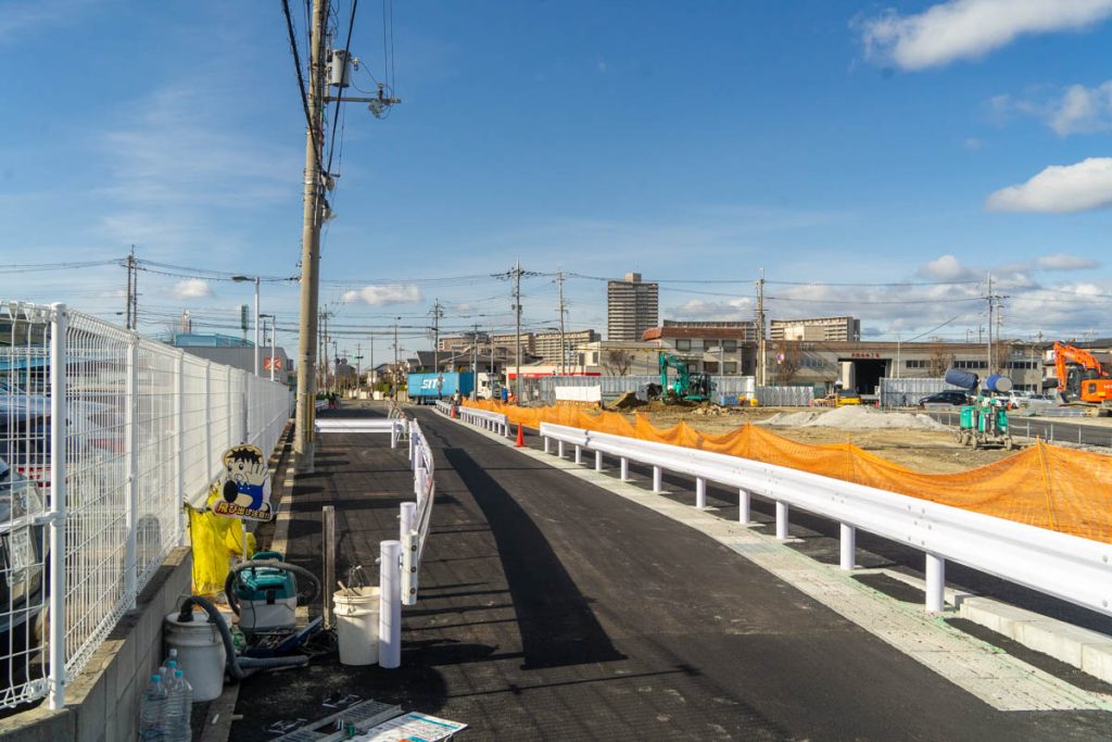 そんなわけでもう通れるようになっているこちらの道路。双方向に全力を出すのはまだっぽいですが、この近隣にお住まいの方はこれまで通りに利用できるようになっているので、うっかり前のところで曲がってしまわないように注意ですね!