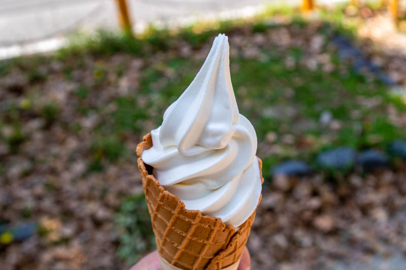 帰り道、私市駅前にある「iroha168」でソフトクリームを食べました。