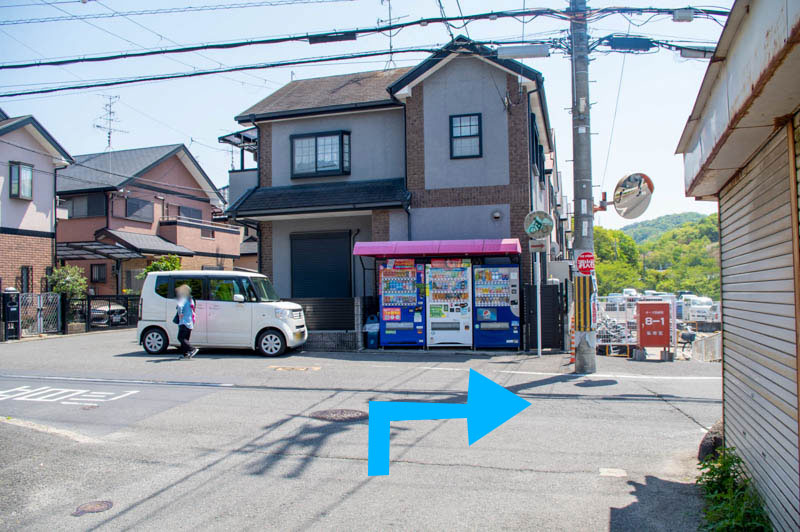 この自動販売機が見えたらヘブンリィターンして右折。ひたすらまっすぐ進みます。