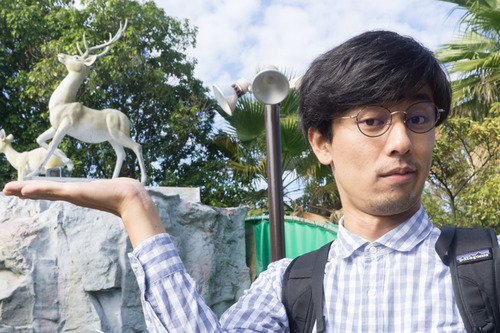 「わ!ビックリした!左後ろ?なんやコレ!最近うしろから見られてる気になってたんやけど、コイツのせいやったんかいな。兄ちゃんおおきになぁ〜。ほんで今日はどっから来たん?え?枚方?なんや地元やないかいな!ワシもここ来て結構長いねんでぇ〜どれくらいなるかなぁ…」