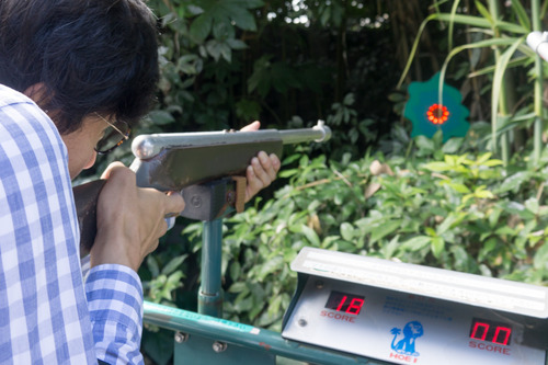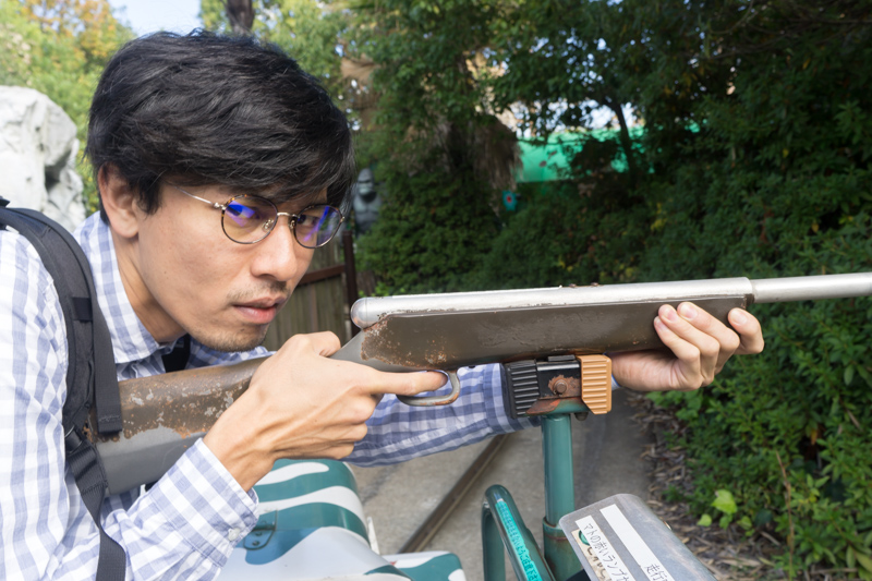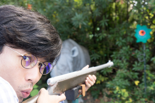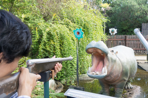 続いて大切なことは、動物たちに「君たちに銃を向けているんじゃない!君たちを背後から襲おうとしている緑のエイリアンを狙っているんだ!」と理解してもらうことです。