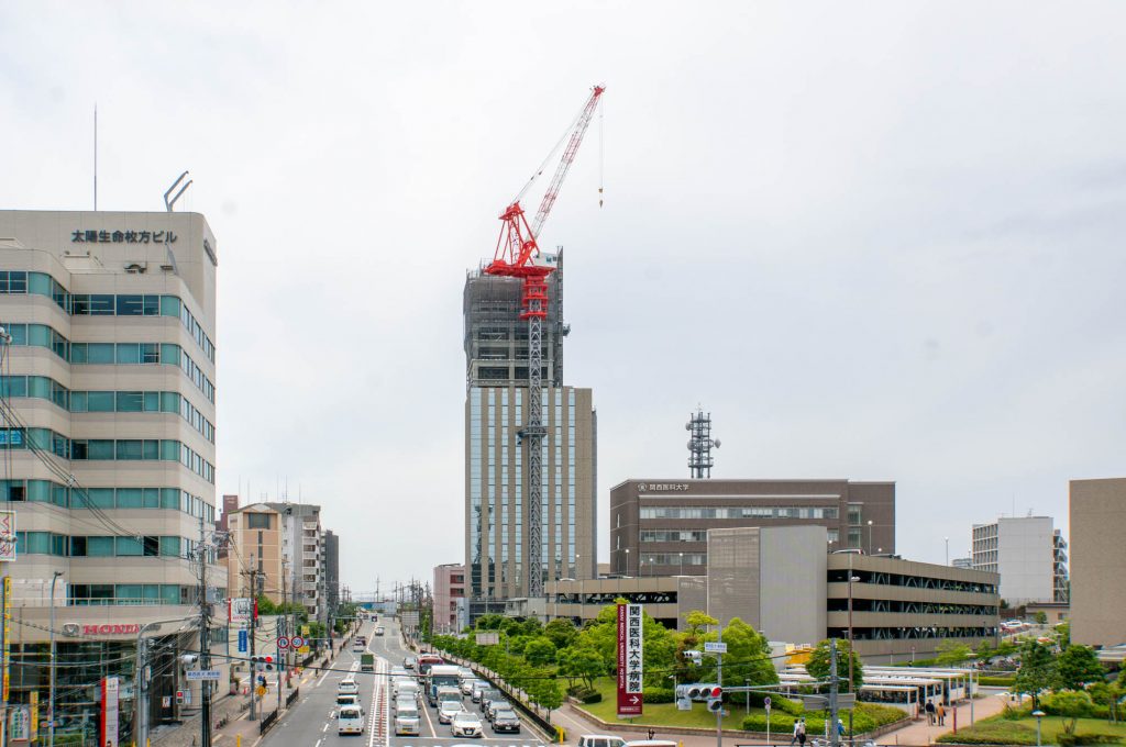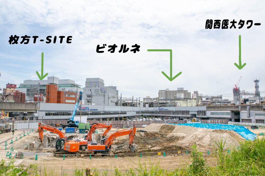 2023年に竣工予定の26階建て126mの巨大施設ができる場所からは、 枚方T-SITE、ビオルネ、関西医大タワーが一望できます。