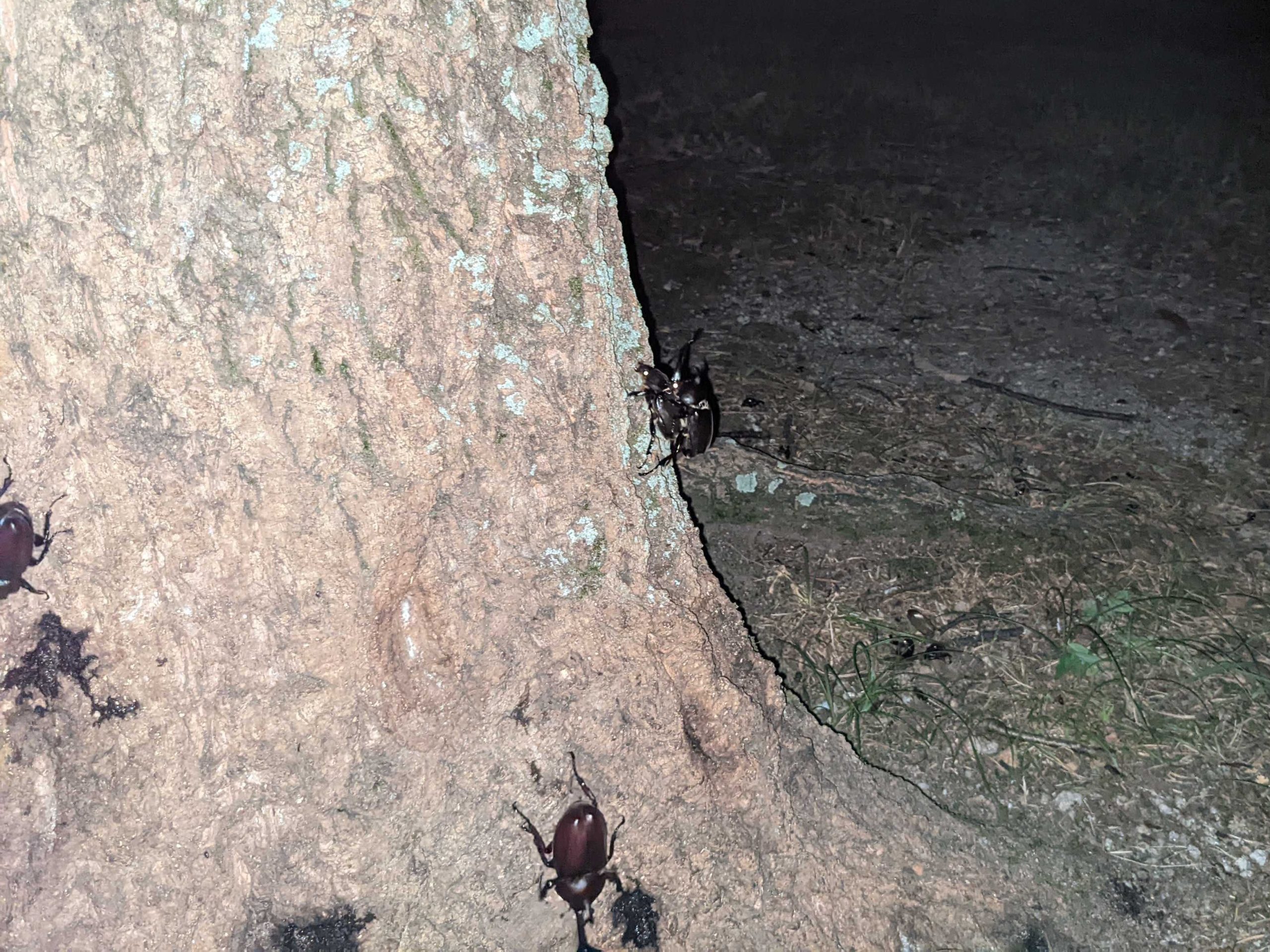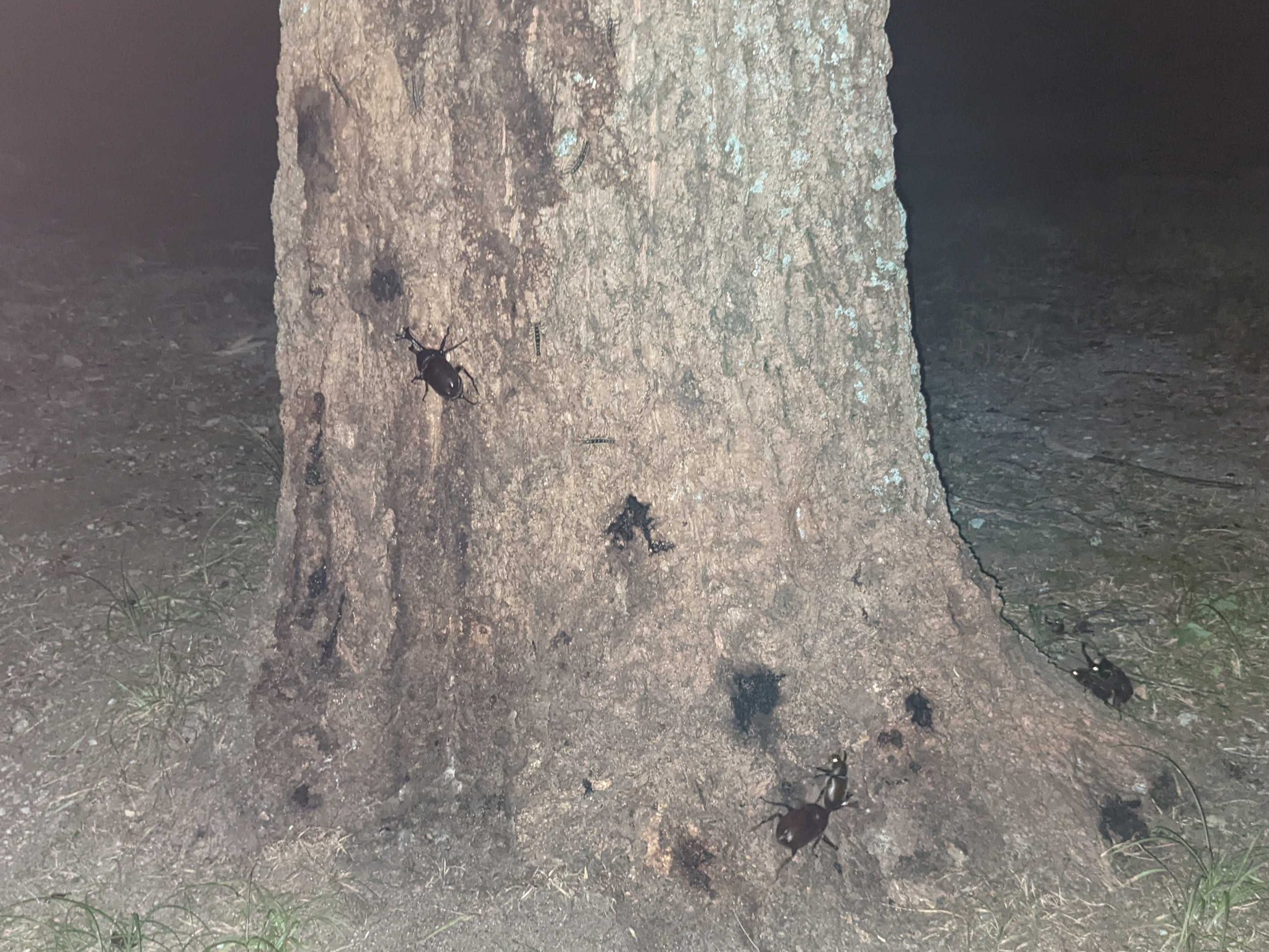 情報提供通り大量。この木の周りには10匹以上いた気がします。照らしながら数えていたら、こっちに飛んできそうだったので凄くざっくりです。
