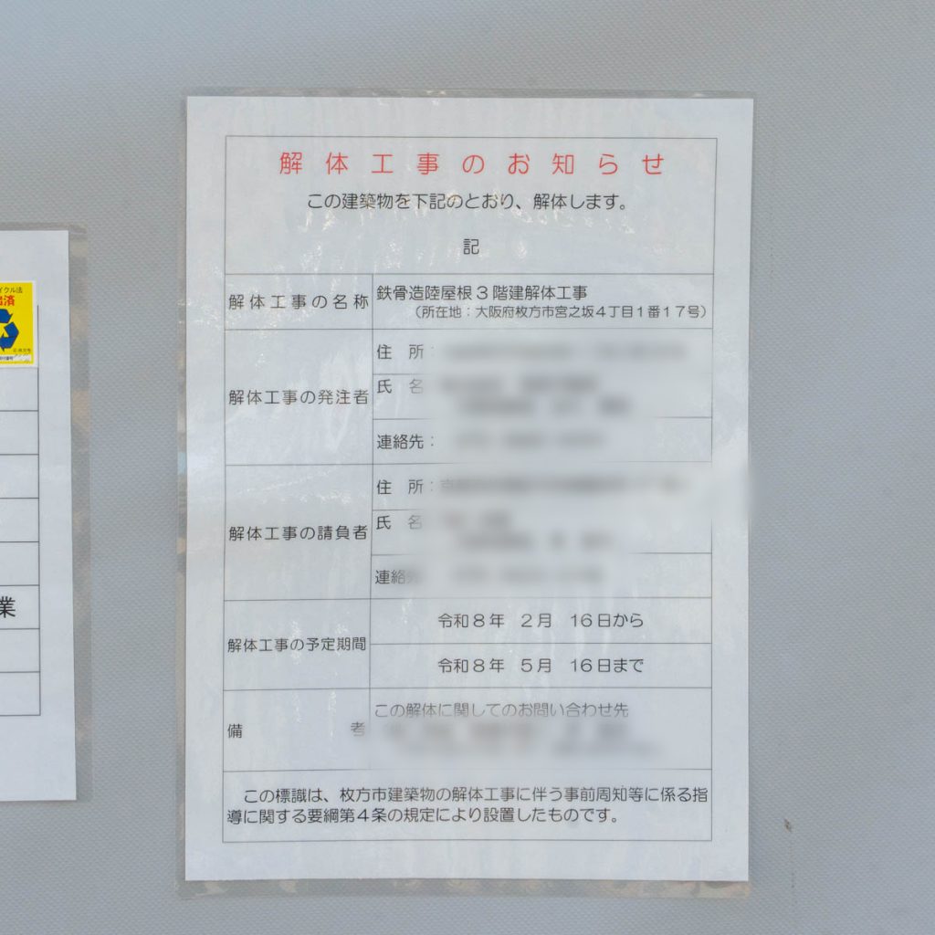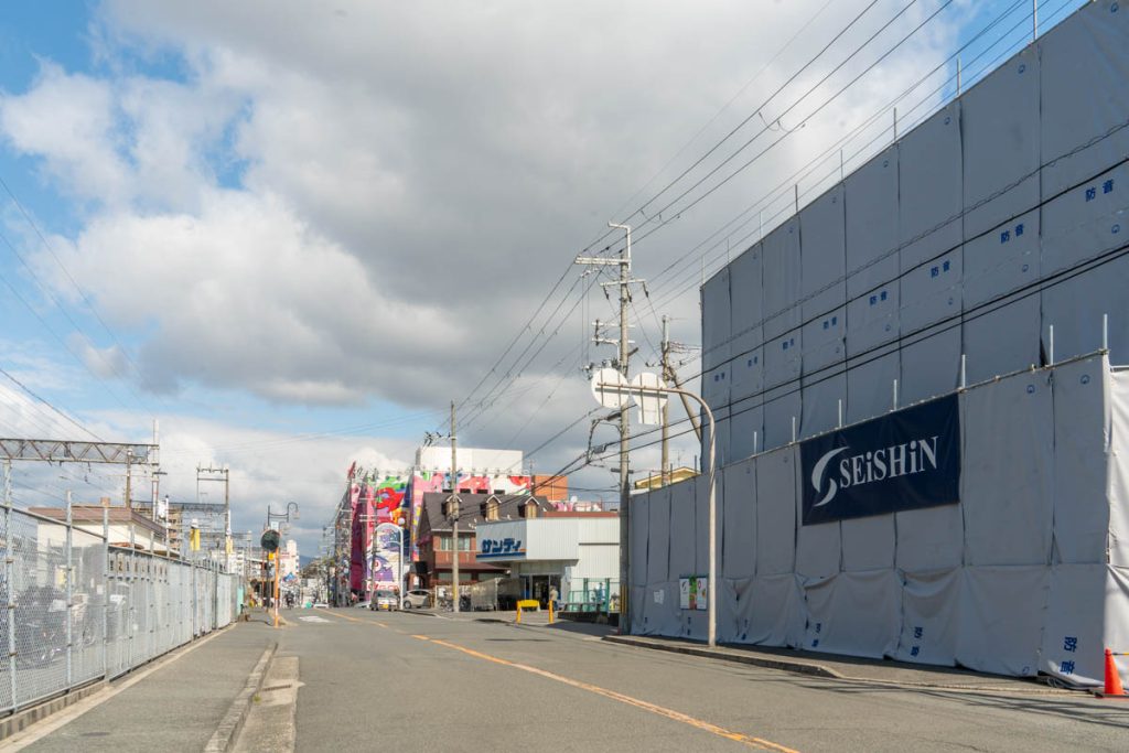 宮之阪のサンディ横のビルが解体されてる。整骨院などが入ってた建物