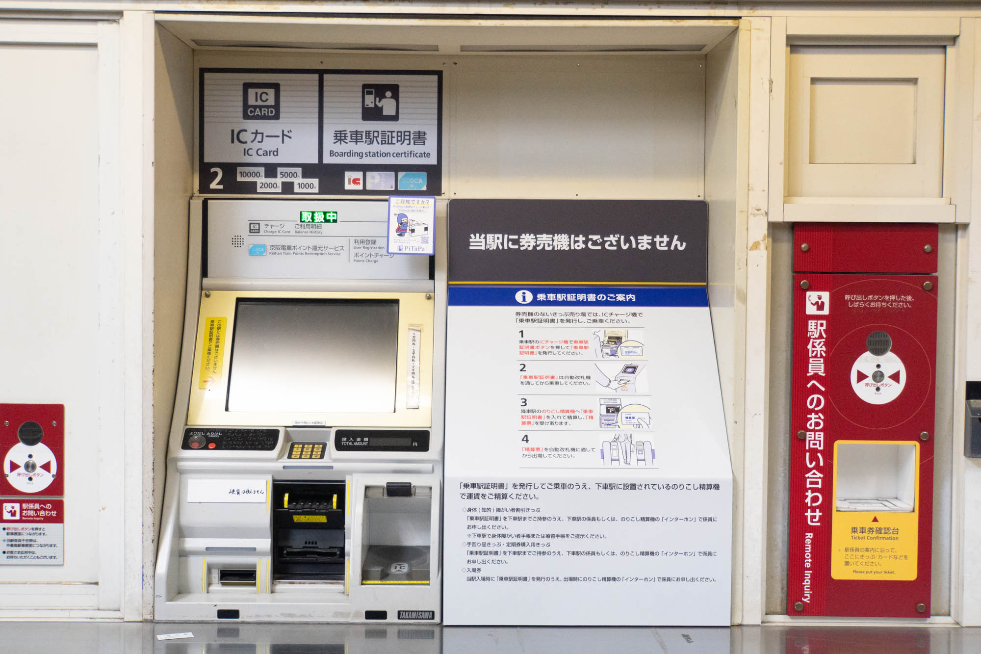 枚方公園駅の自動券売機での連絡きっぷの発売が終了しています。