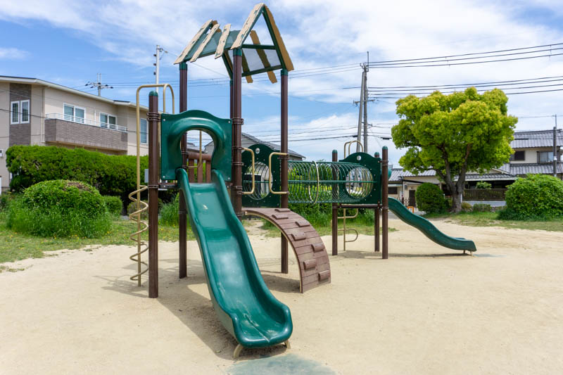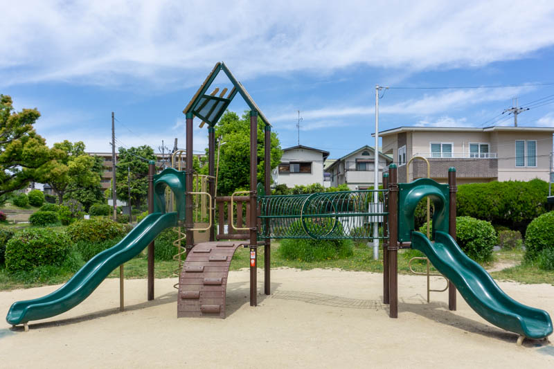 香里ケ丘西公園の代表的な遊具になりそうなインパクトのあるすべり台ができましたね。