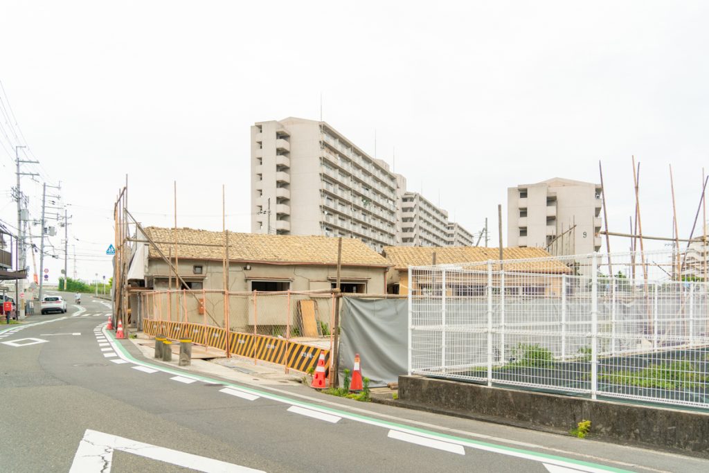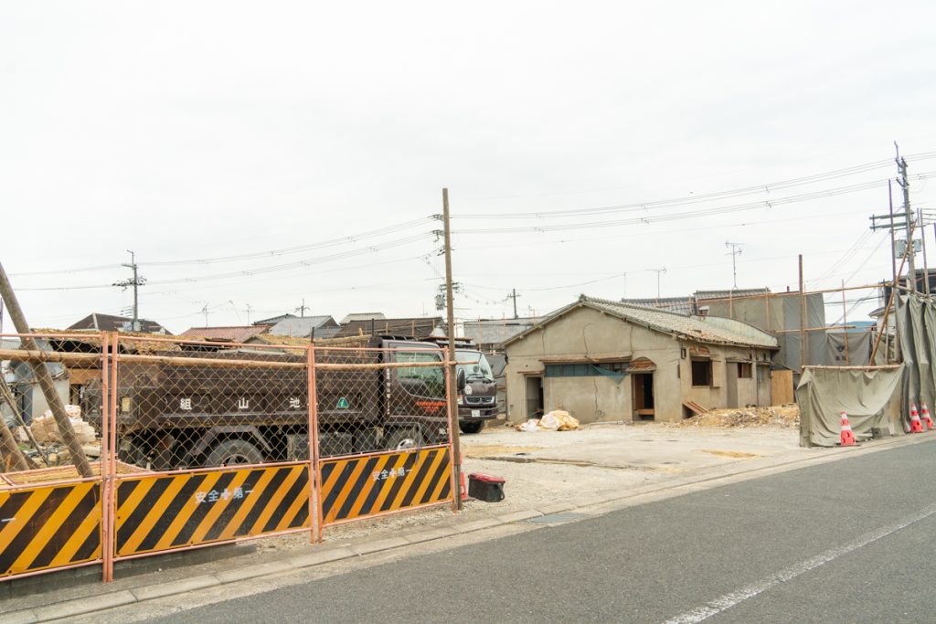 建物が幕に覆われています。見に行った際、一部は解体され更地のような状態になっていました。