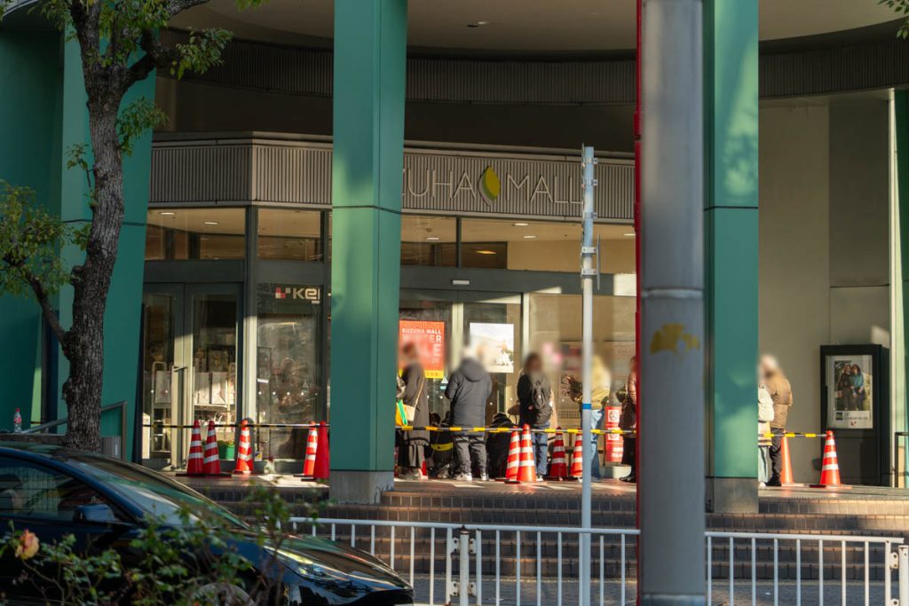 駅側の出入り口は9時時点でやや行列ができていました。