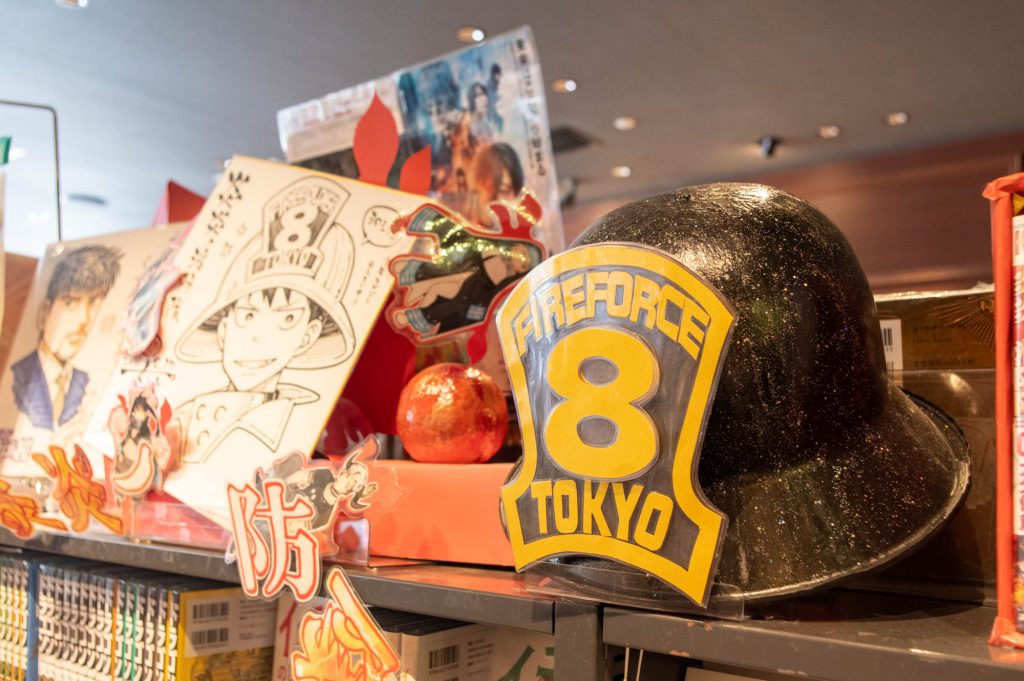 炎炎ノ消防隊のキャラクターが付けているヘルメットも飾られていました。