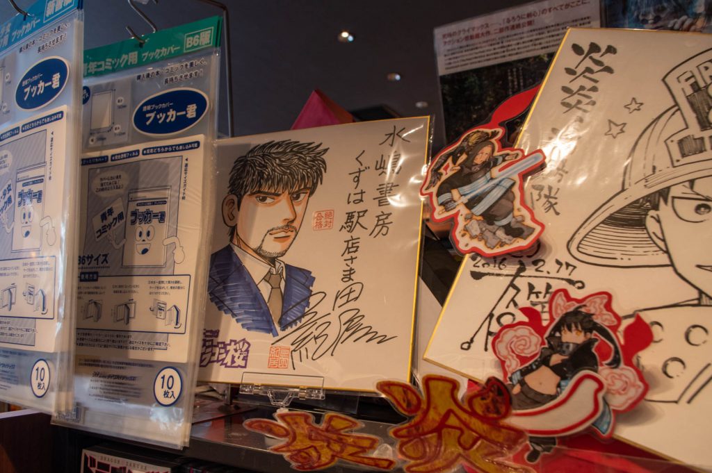 最近再びドラマ化した漫画「ドラゴン桜」の作者 三田紀房さんや漫画「炎炎ノ消防隊」の作者 大久保篤さんのサインも。
