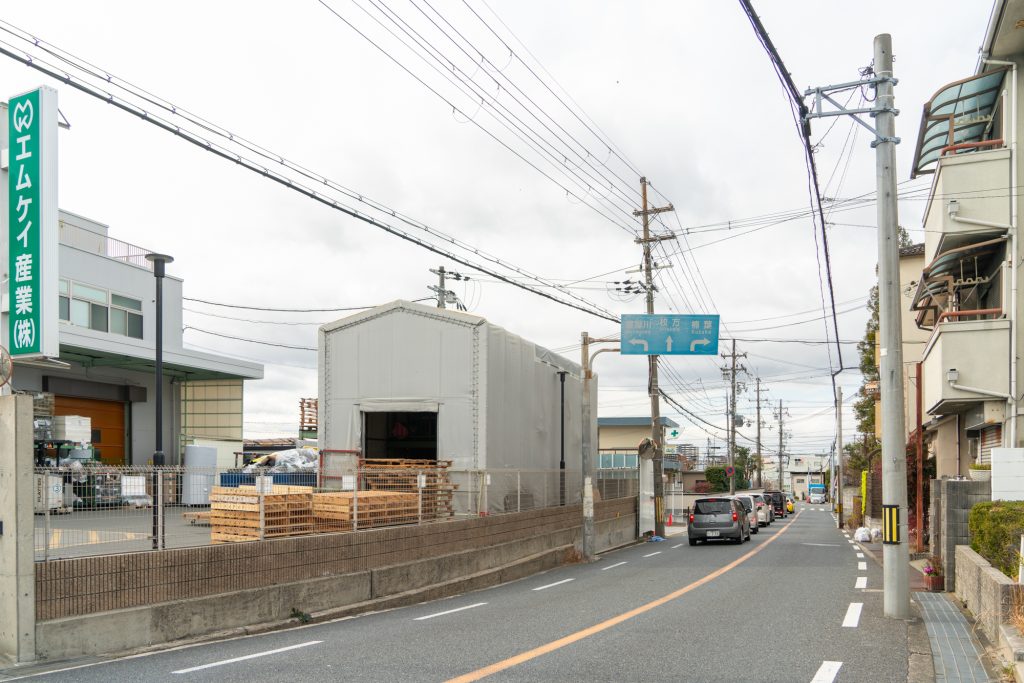 道を挟んで目の前には「ユニクロ 枚方大峰南店」がある位置で、こっちに進むと府道18号線に出ることができます。