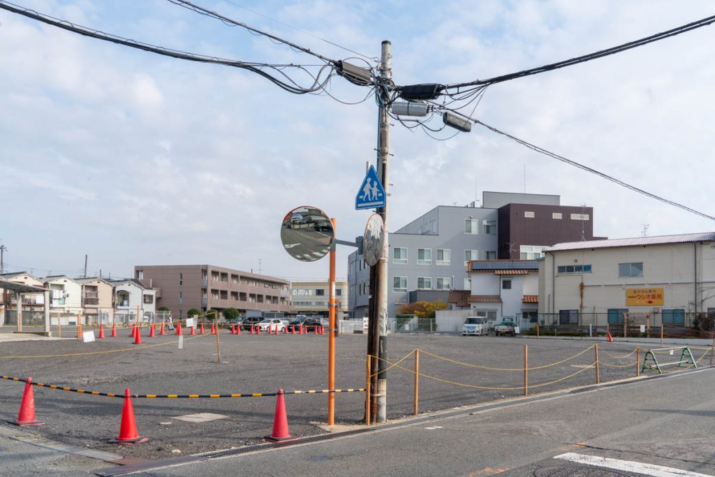 府道17号線沿い招提元町の旧向山病院の建物が解体されて更地になっています。