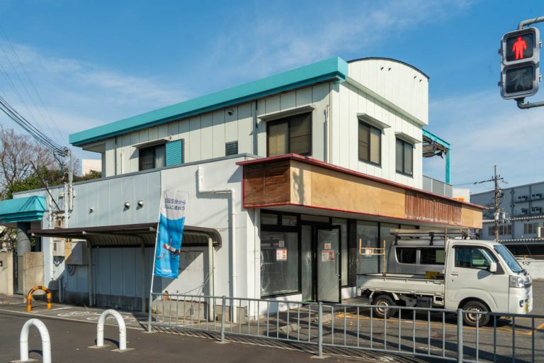 看板が2つついています。この場所には以前「鶴丸饂飩本舗」がありました。