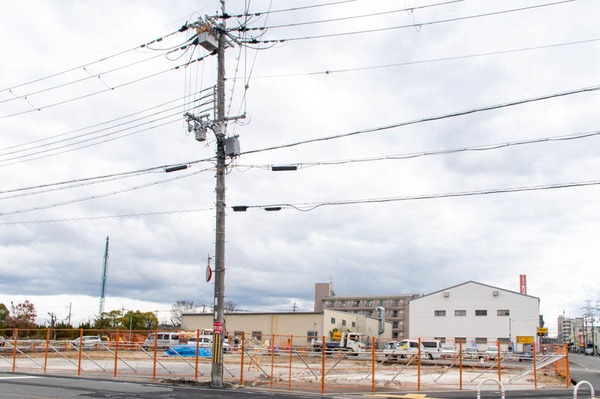 府道735号線沿い家具団地の旧「枚方信用金庫 家具町支店」の建物があった場所が更地になっています。