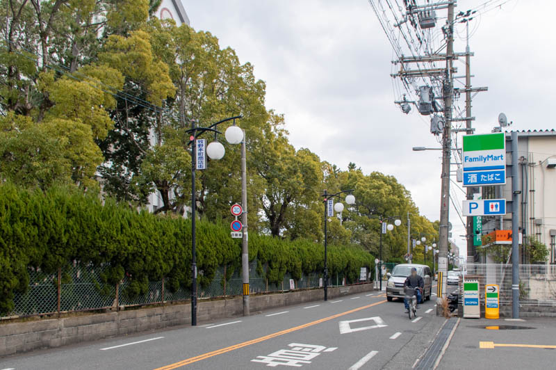 反対方向へ行くと関西スーパーやコノミヤなどがあり、直進すると府道18号線と合流する交差点「招提口」が。