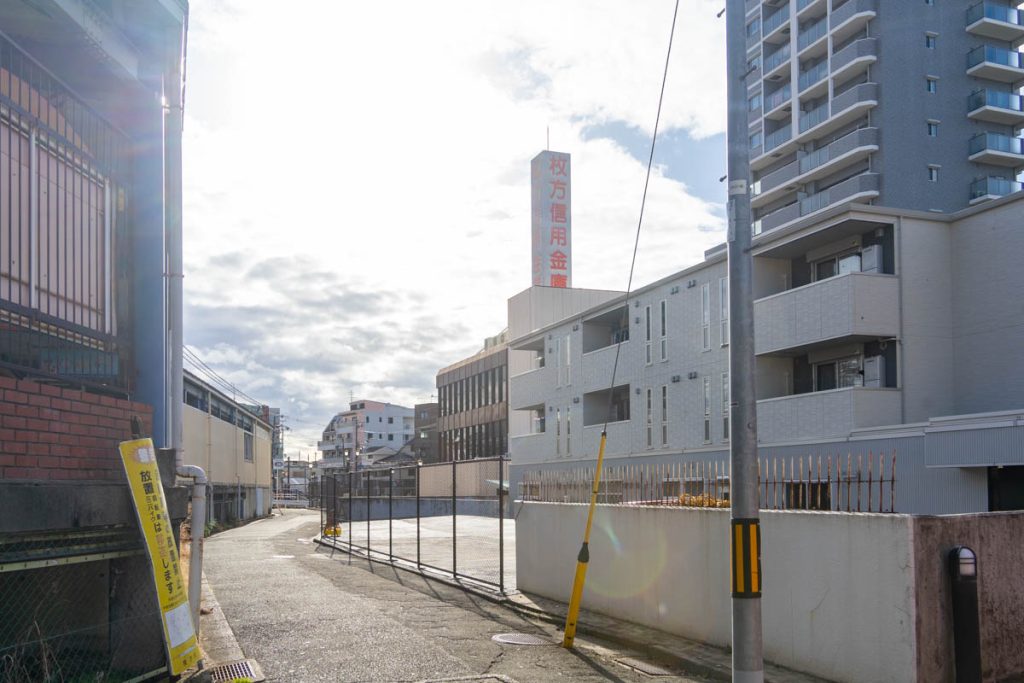 枚方市駅〜枚方公園駅あたりは線路の両側に一方通行の道路が1本ずつ通るようでして、2014年にもその予定地を見に行っています↓