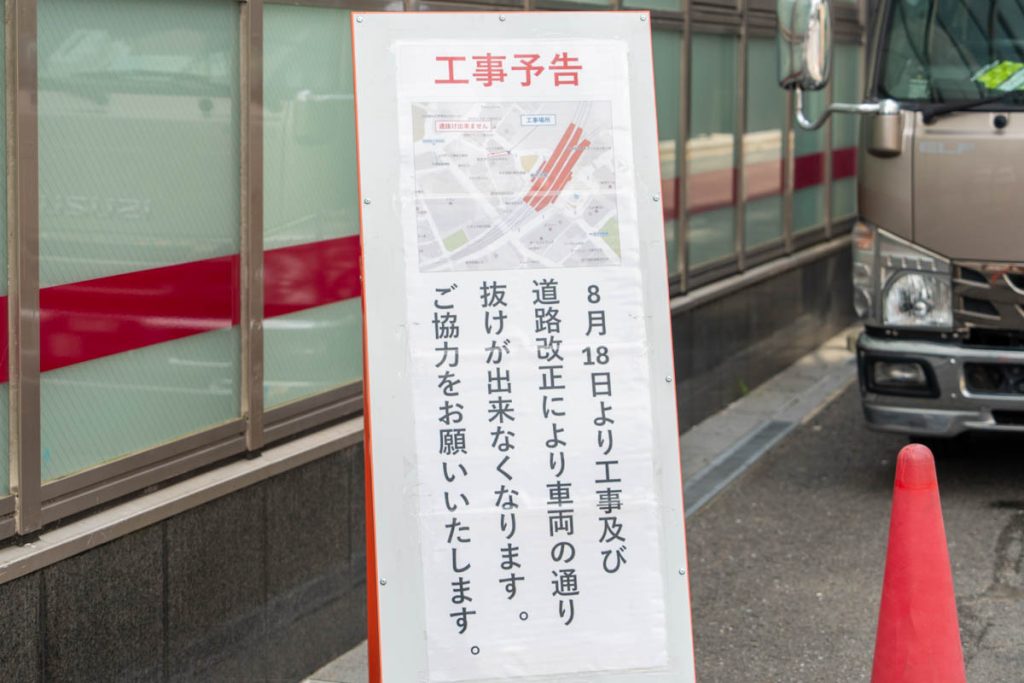 駅前のロータリー部分も8月31日まで、夜間車両通行止めになるそうです。