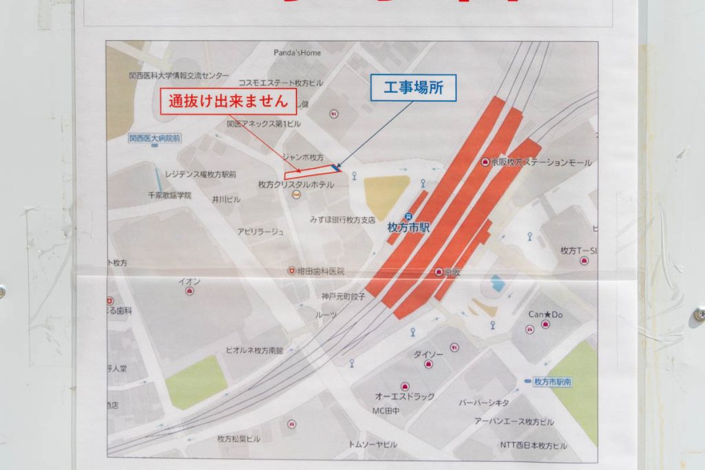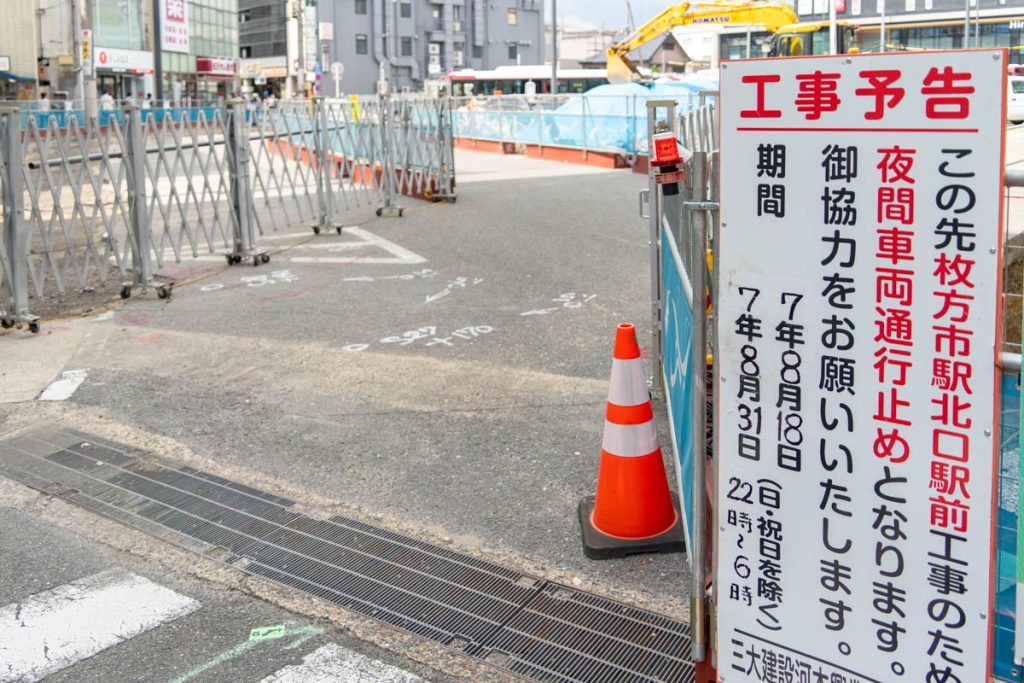 枚方市駅ちかくの道で車両の通り抜けができなくなるようです。