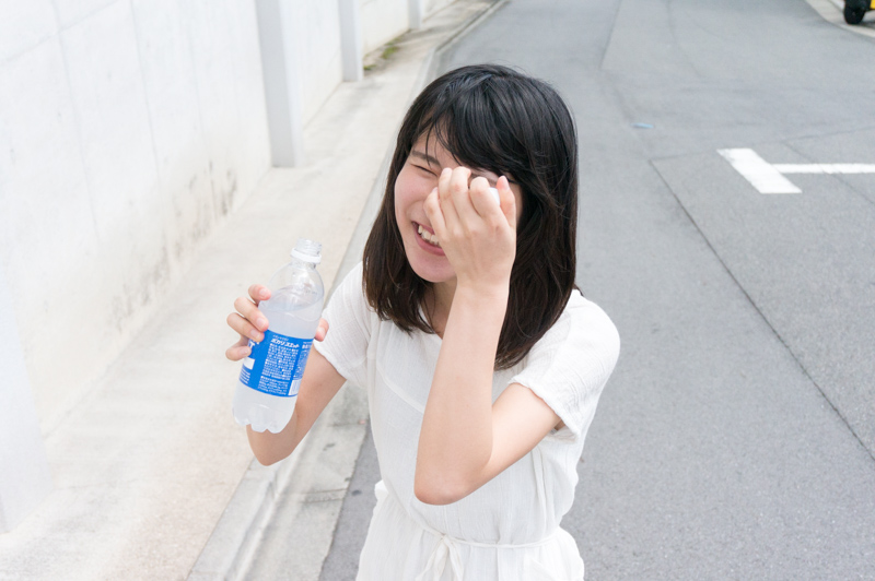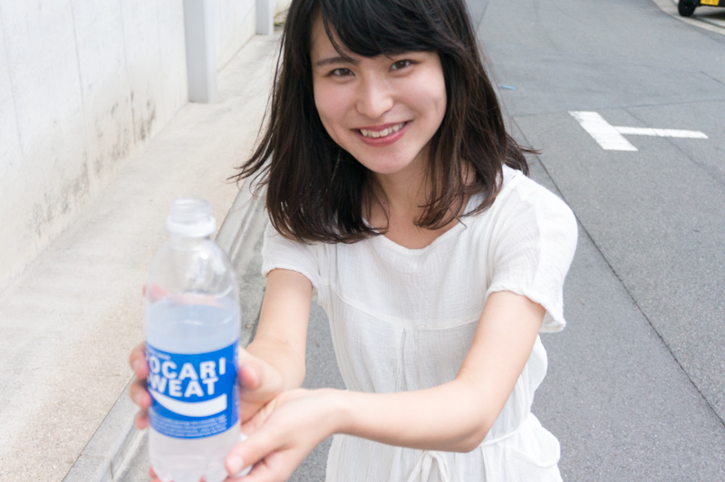 女子大生&爽やかな服装なので、とりあえずポカリを持って走ってもらうことに。