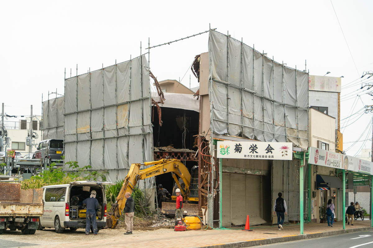 枚方公園駅ちかくの「竹川たばこ店」が入っていた建物が解体されています。