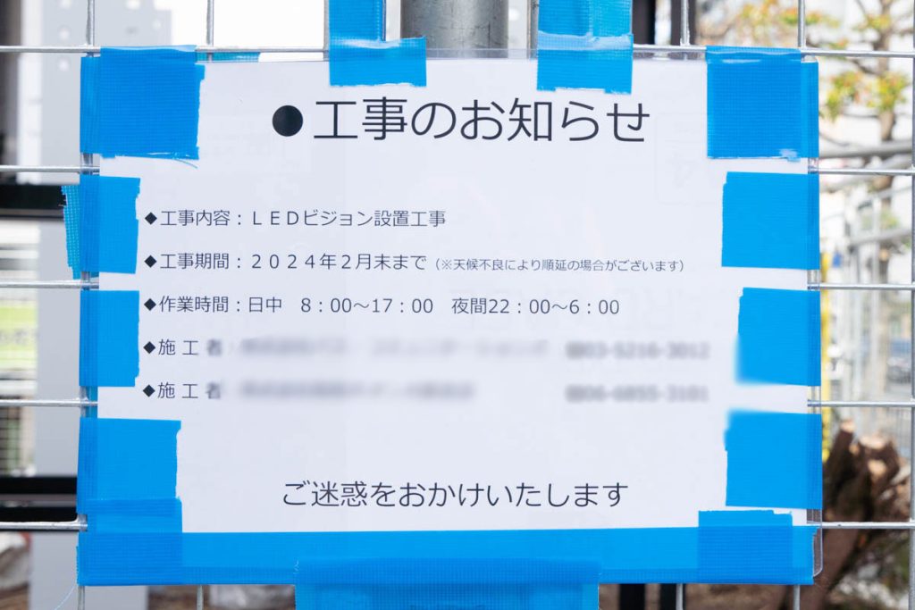現地にあった貼紙によるとこの場所にはLEDビジョンが設置されるとのこと。