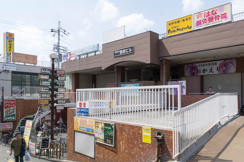 左側を走ってる道路が国道1号線で左からマンション、商業施設、交通広場、そして光善寺駅という配置。交通広場と光善寺駅に関することは以前にも記事にしています。