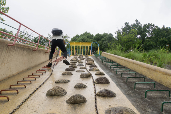 ここからルートが3つにわかれ、左の滑り台ルート、写真右の階段ルート、そして写真に写ってないですがもう少し右にも階段があり、そのルートの3つです。