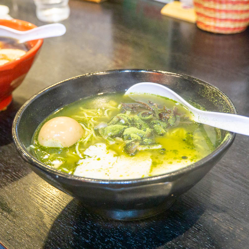 「これがその”抹茶ラーメン”。めっちゃ抹茶の味するんかなと思って食べたんですけど、うっすら抹茶の味がするくらいでした」