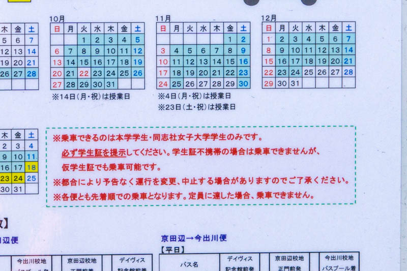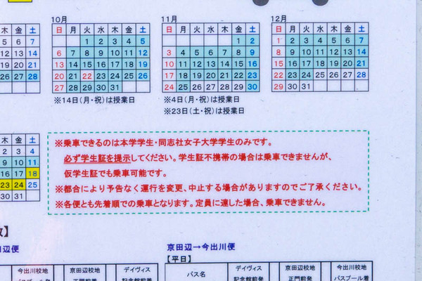 「この時、まだ元気有り余っていましたね〜。そして、同志社前にあったシャトルバスの貼紙を見てみると…」