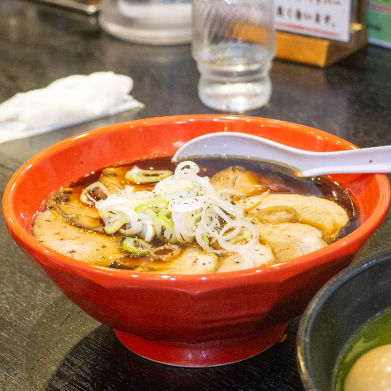 「僕はクロだけに黒色のスープのラーメン”富山ブラック”を注文!意外とあっさりしていました」