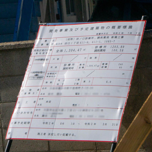 田口に「(仮称)田ノ口診療所」ができるようです。