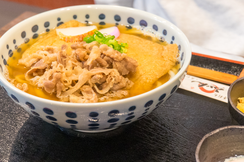 おフラの方は「ドカ肉盛りきつねうどん」を注文。