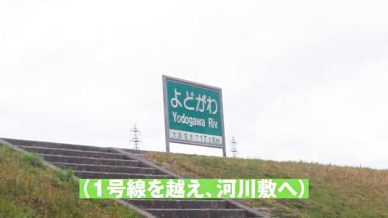 門真駅を抜けて進むと大日イオンのそばをとおり、その先にある1号線を越えると淀川沿いに出ます。
