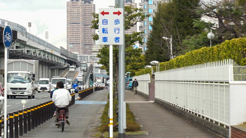 1つ上の写真の地点から1kmほどで鶴見緑地公園の入り口までやってきました。