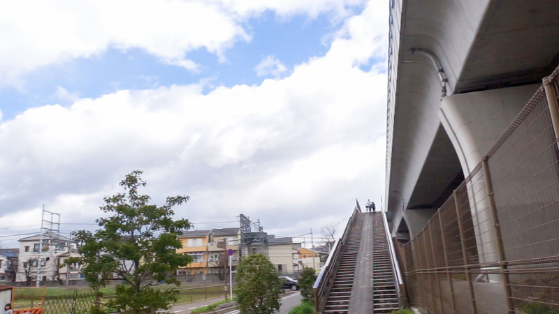 第二京阪沿いに入ってからは長く、信号もたまにあって、しかも高低差のアップダウンがすごいので、なかなかのツラさです。上の写真は京阪交野線を越える歩道橋のシーン。