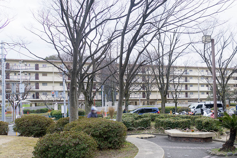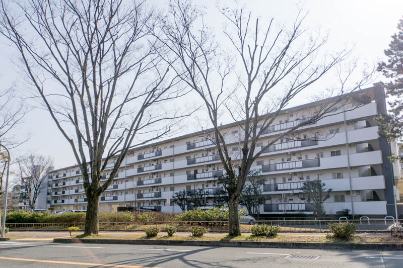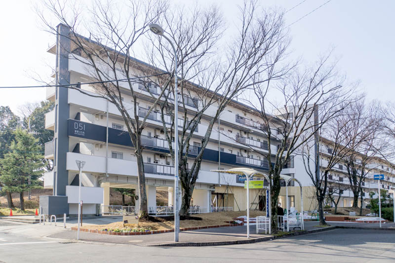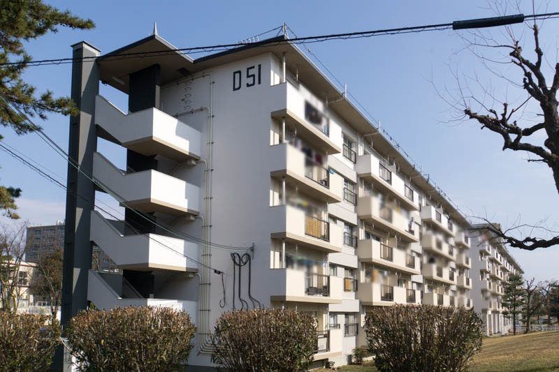 バス停「新香里」そばの香里団地D51棟がなんかスタイリッシュになっています。