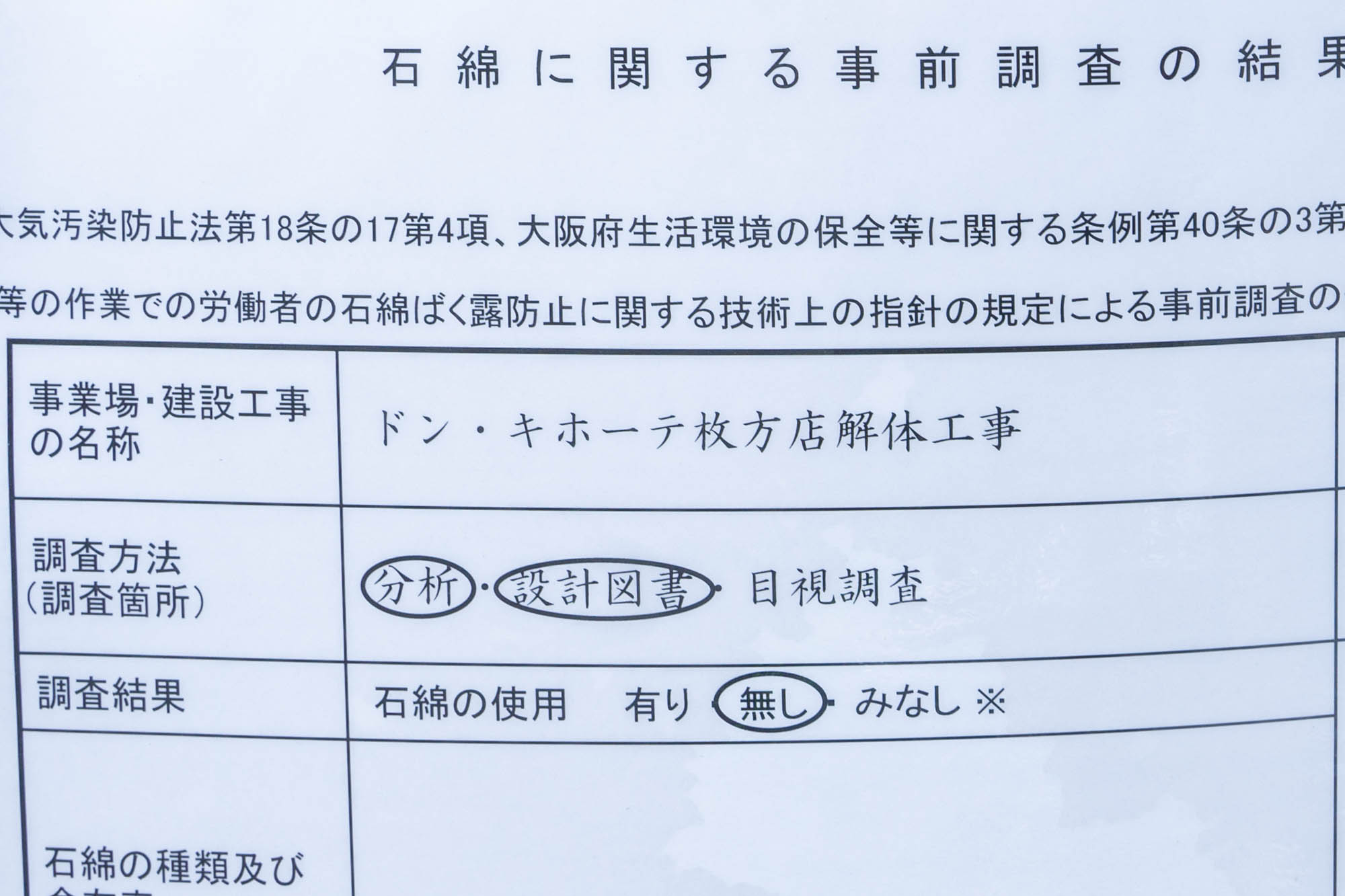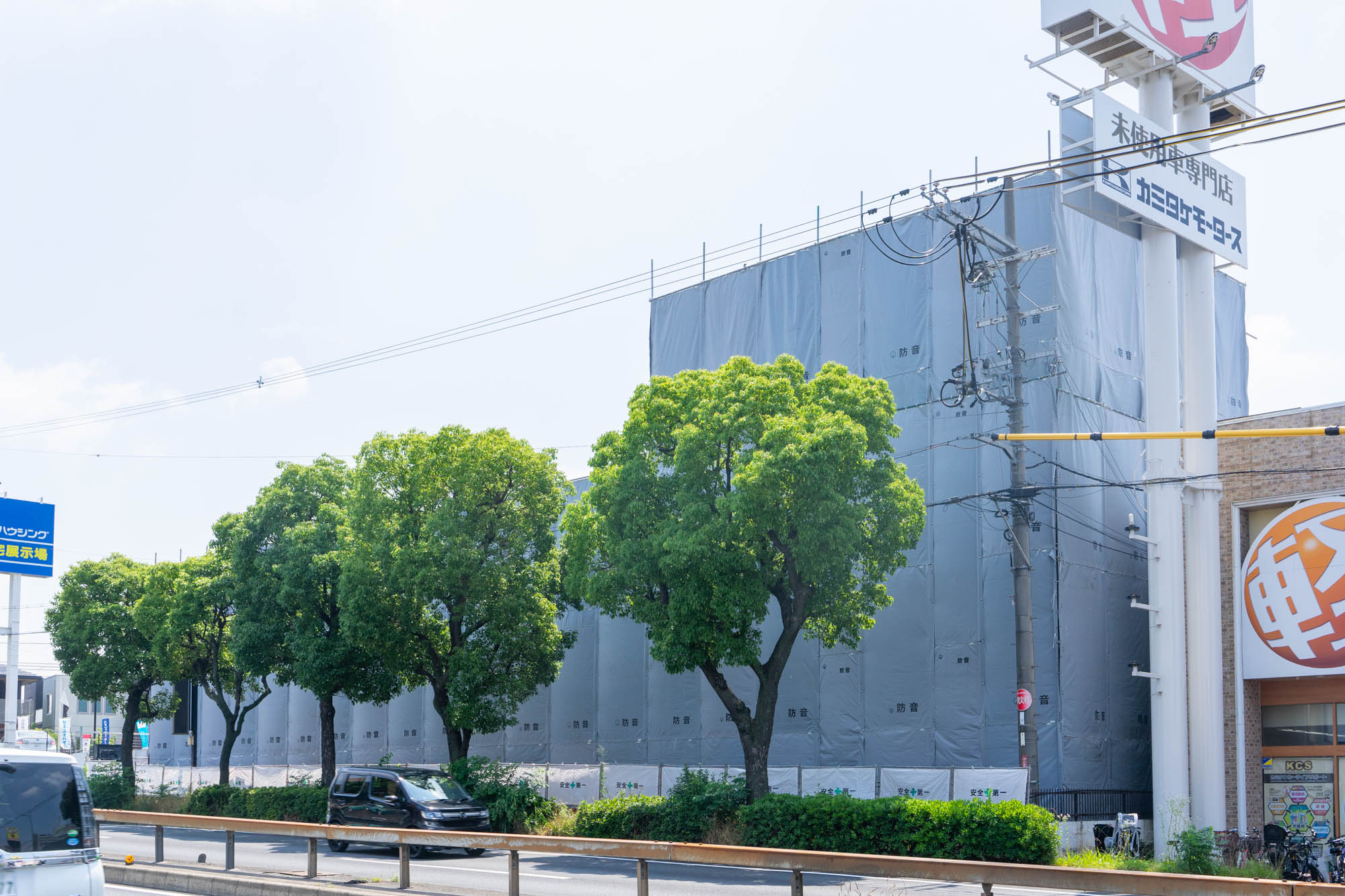 国道1号線沿い池之宮の「ドン・キホーテ枚方店」が入っていた建物が解体されています。