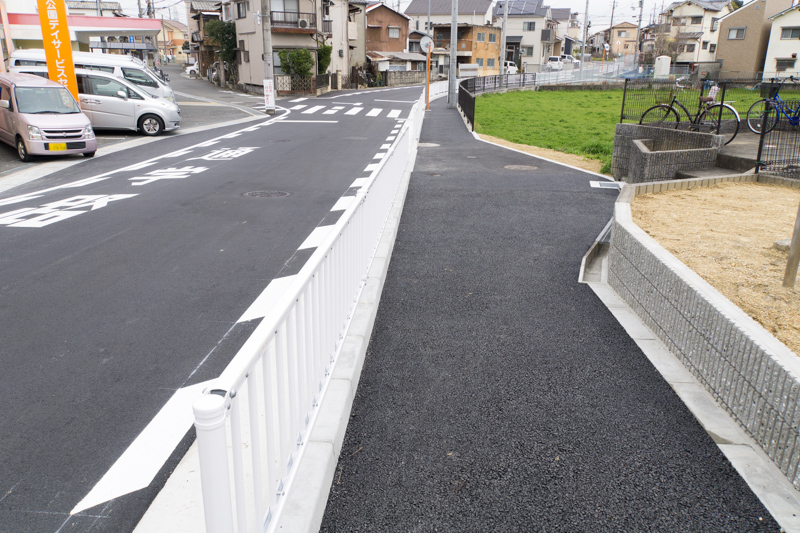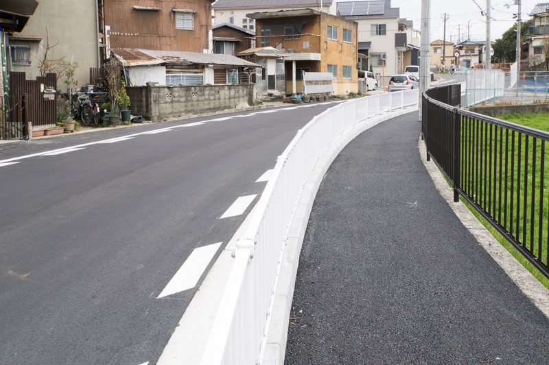 1号線に抜けるには変わらず1車線のみなので大変そうではありますが、この辺りは歩道も綺麗になりましたし、手すりも頑丈そうなものに変わったので安全度も増したのではないでしょうか。