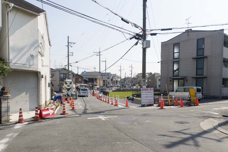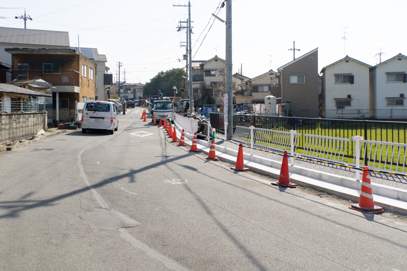 ここから先の木曽路横に抜けるすっごい細い道も幅が広がるかと思ったんですが、そんなことはなく山神宮手前までが新しくなった模様。