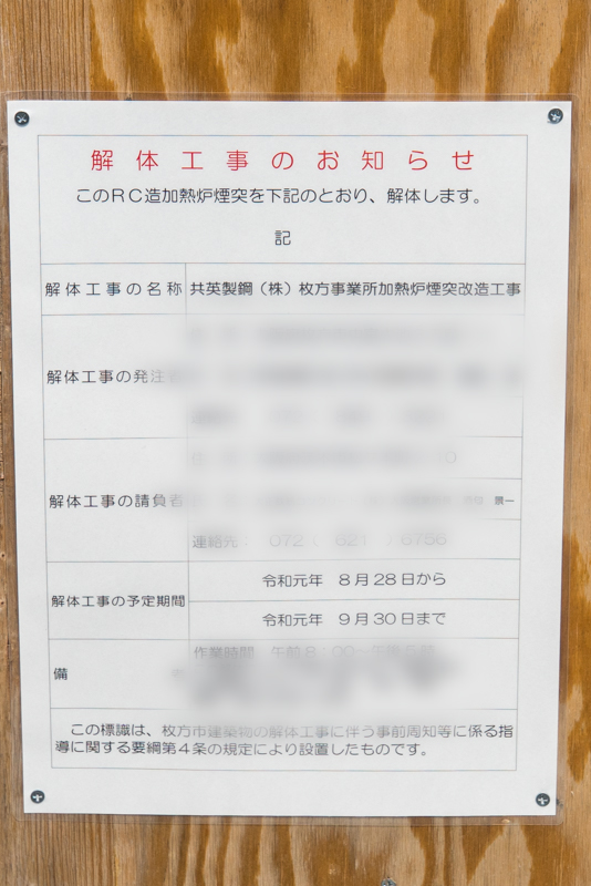 なお、この煙突は共英製鋼のもので、共英製鋼は大阪市内に本社を構える鉄鋼製品を製造するメーカー。この枚方事業所は関西地区の拠点で、敷地内には地下トンネルなんかもあるそうです。
