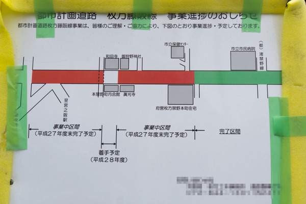 そしてこの椎葉工務店と市立ひらかた病院付近までで工事区間は終了です。