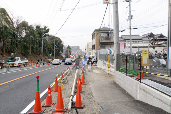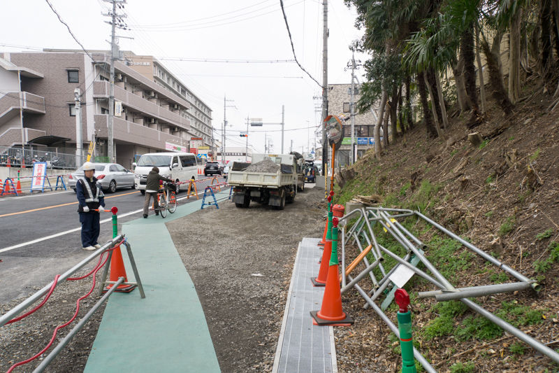 その先は現在通行止めとなっていますが、多分ここが開通し、その先を左折のち右折して保健センターの方へ登っていくのが迂回路だと思われます。