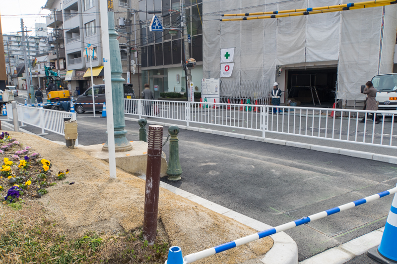 まずてこやの前が段差がなくなっていて、この写真でいうと右側部分が、