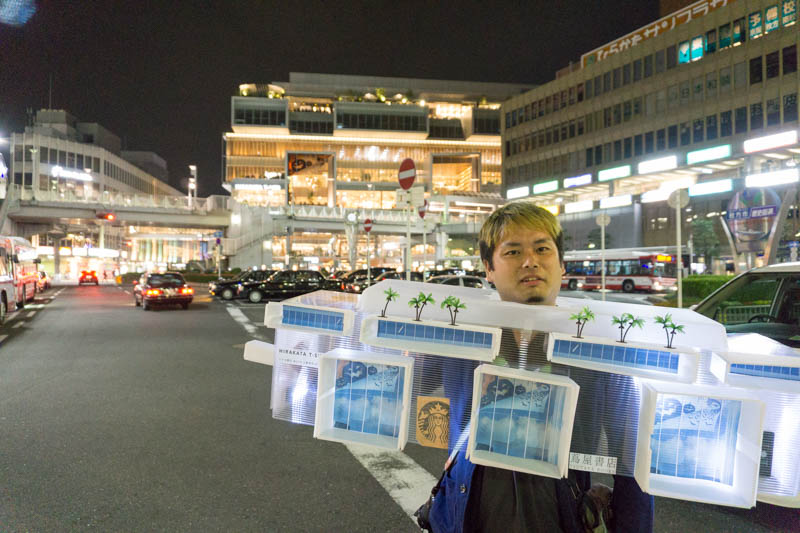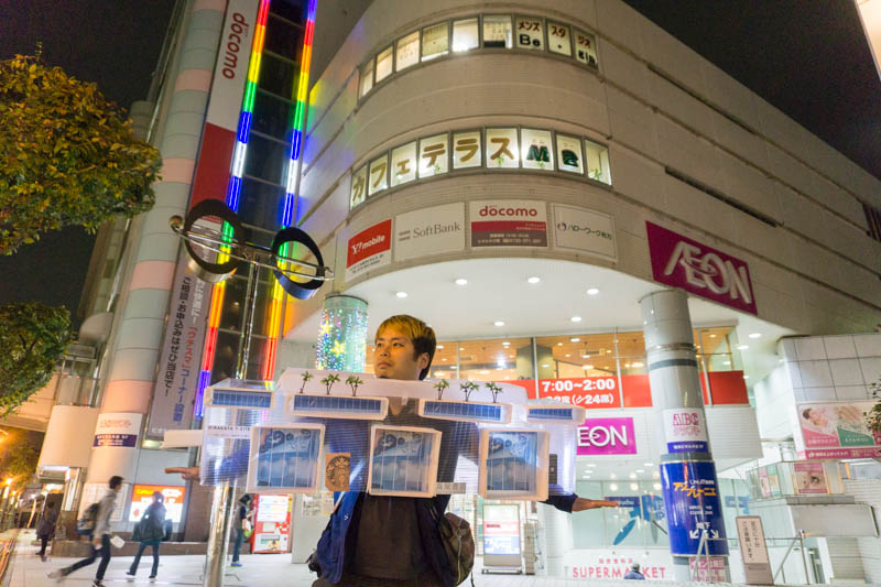 ラーメンコスプレ、わらしべ長者につづいて枚方市駅周辺を練り歩いていきます。